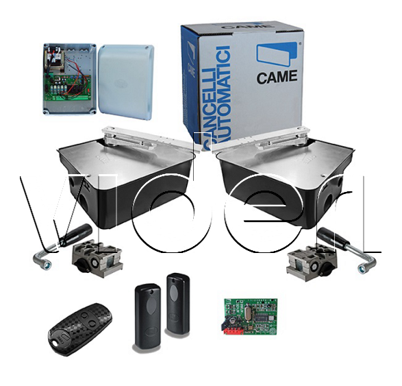CAME - podzemné pohony pre dvojkrídlovú bránu do 400kg/7m, vr. riadiacej elektroniky, páru fotobuniek, prijímača a 1ks vysielača
