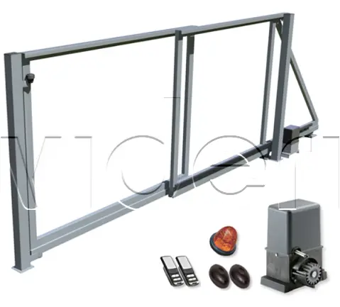 Posuvná teleskopická samonosná brána vr. stĺpikov, dvojdielna.